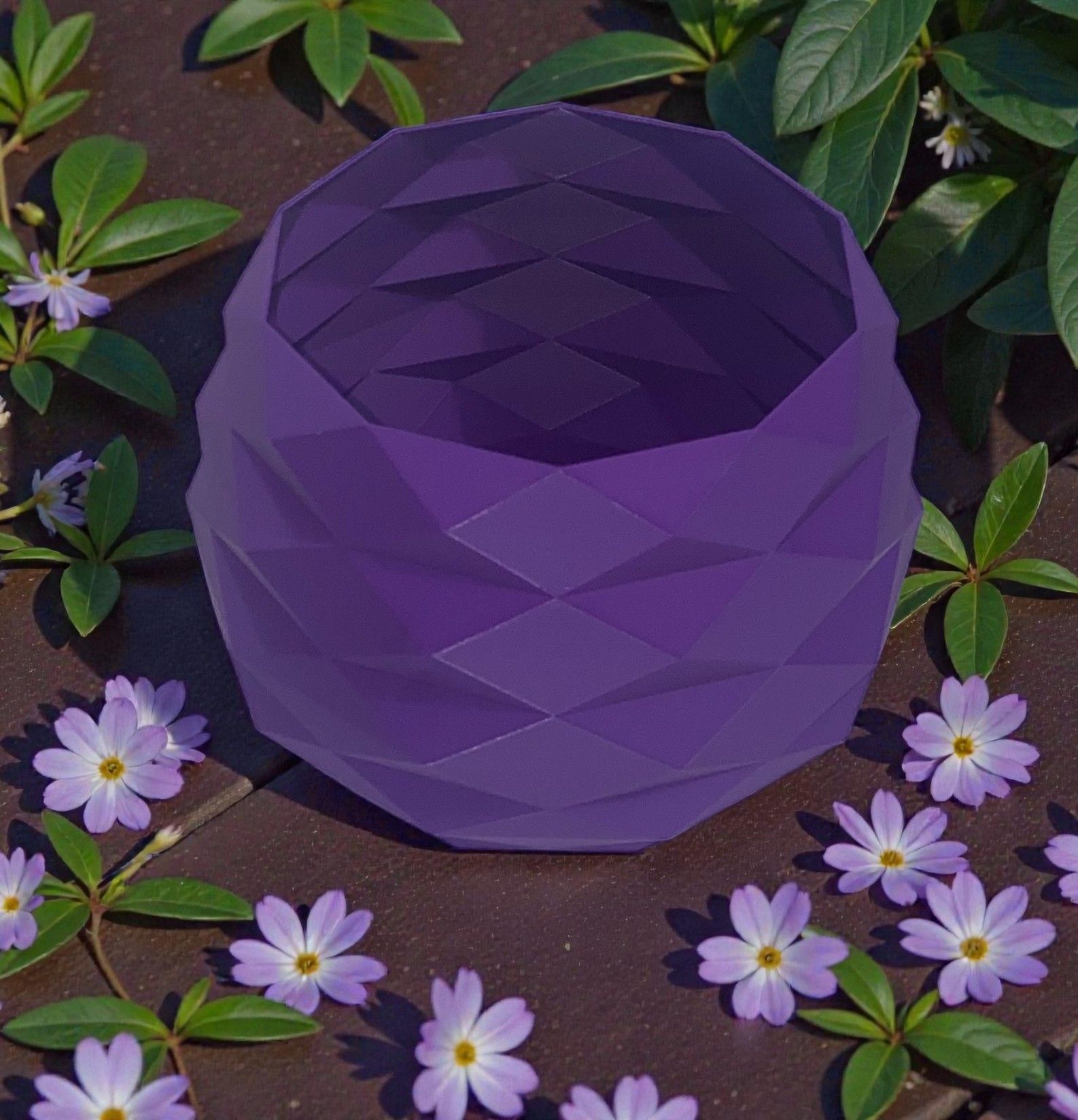 Cache pot décoratif au design géométrique facetté à imprimer en 3D. Fichier STL & 3MF idéal pour une décoration intérieure contemporaine et originale.