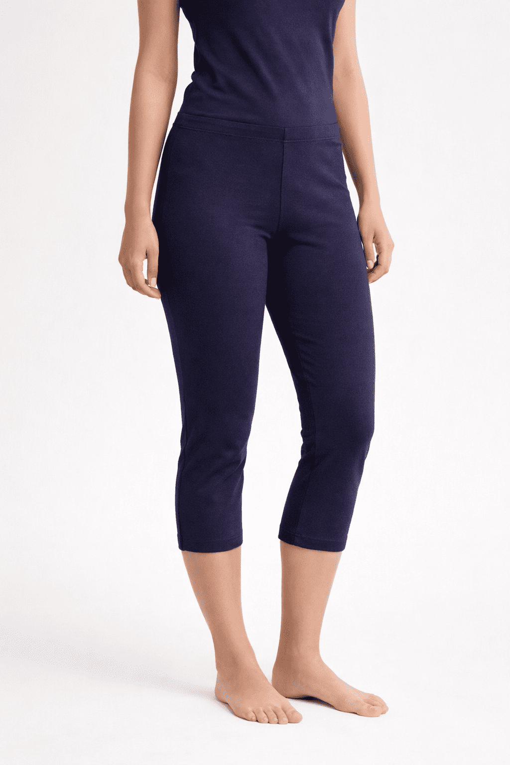 Legging corsaire 3/4 Terranova bleu marine, taille M, en coton majoritaire avec une touche d’élasthanne. Un modèle uni, souple et près du corps,