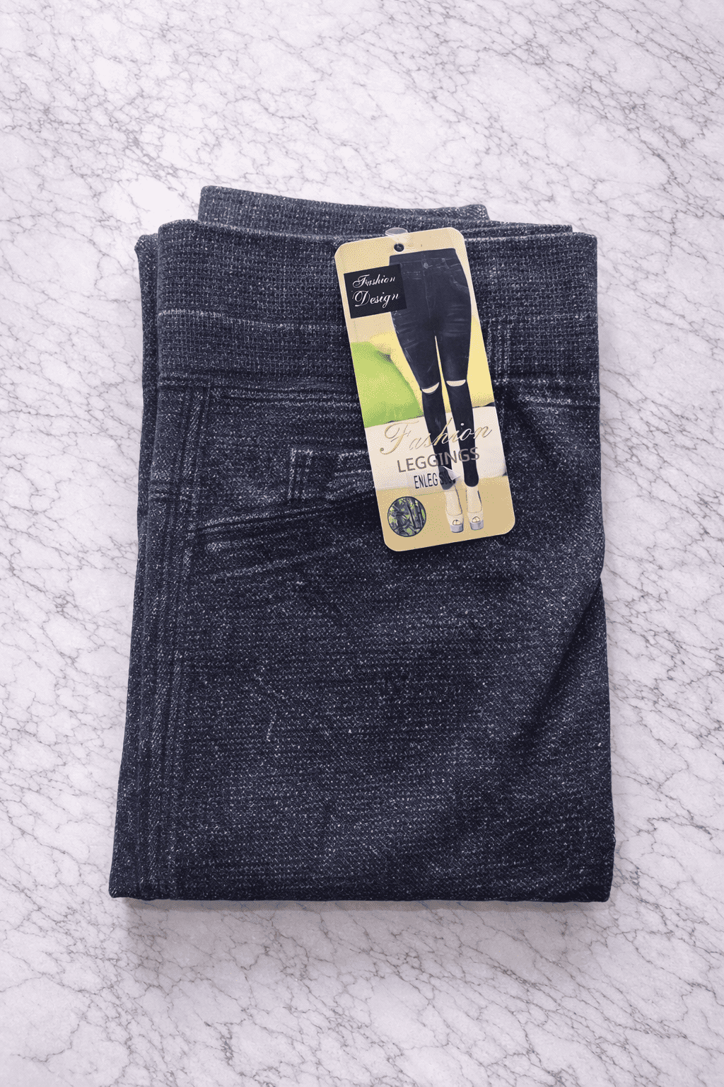 Legging effet jean à découpes genoux, signature urbaine, taille unique