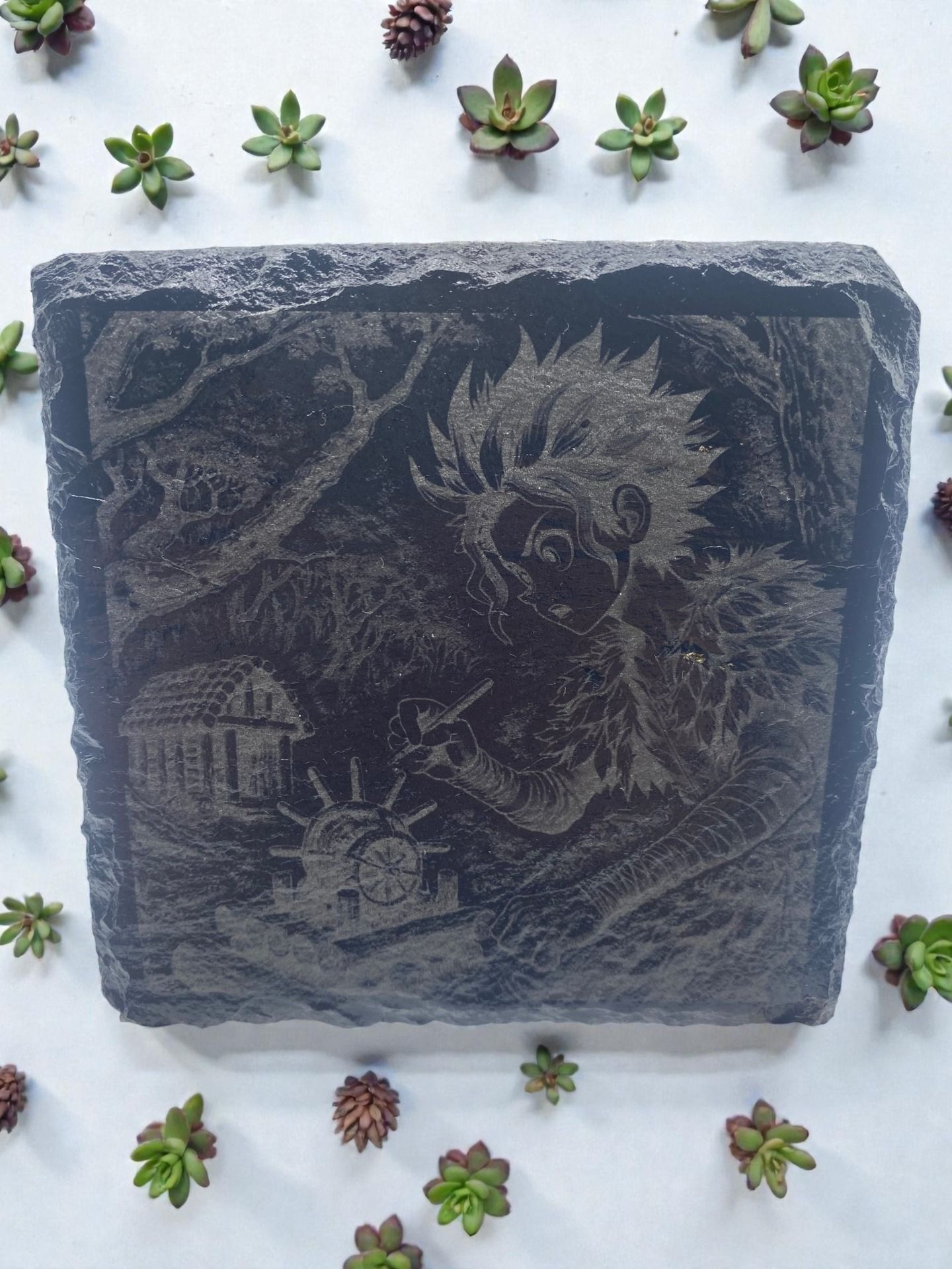 Chaque sous-verre est gravé au laser avec un visuel différent,