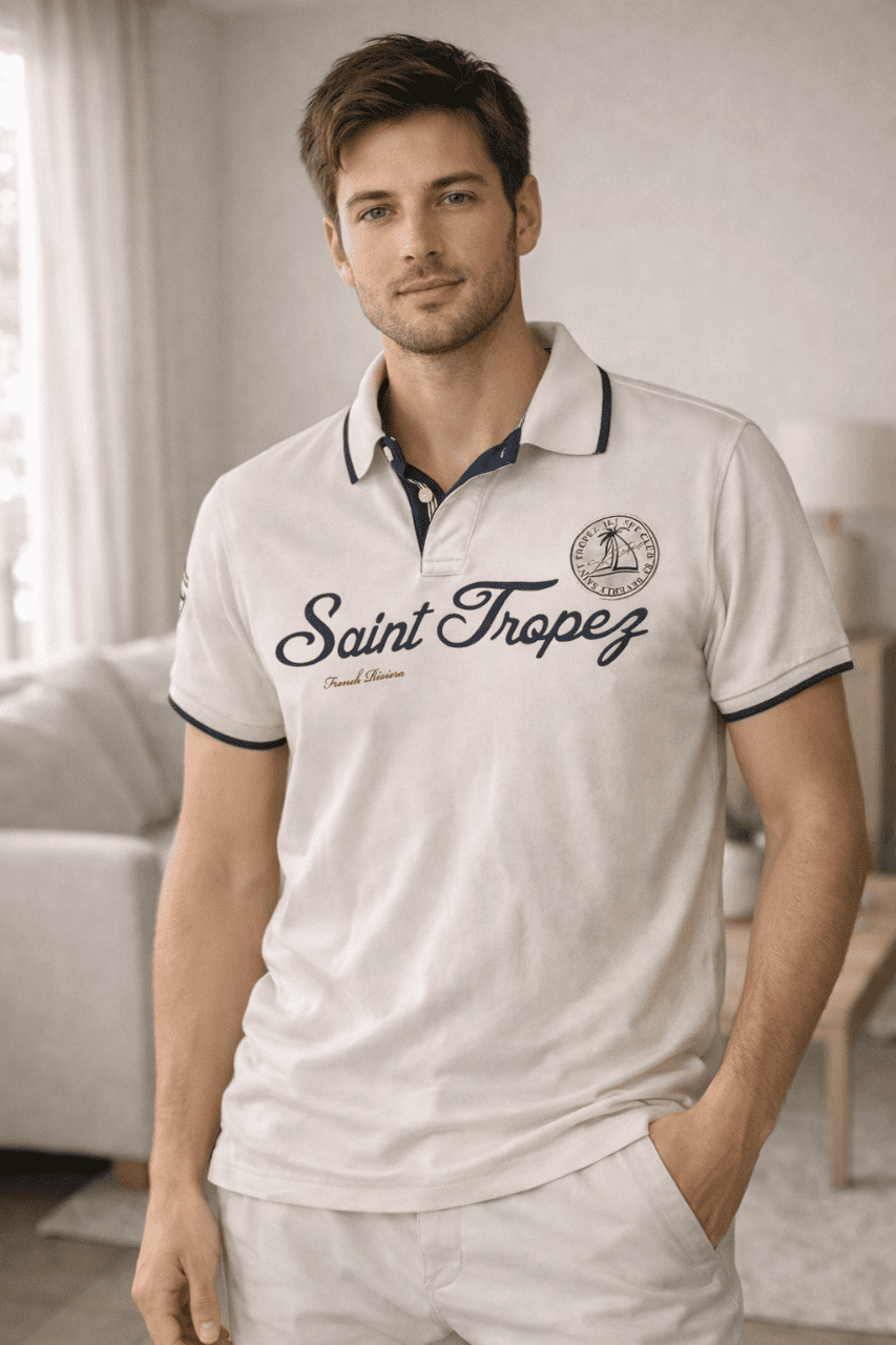 Polo Saint Tropez homme – Blanc cassé – L