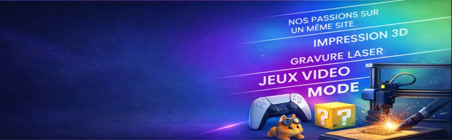 Consoles, jeux, goodies, figurines, impressions 3D & créations originales.