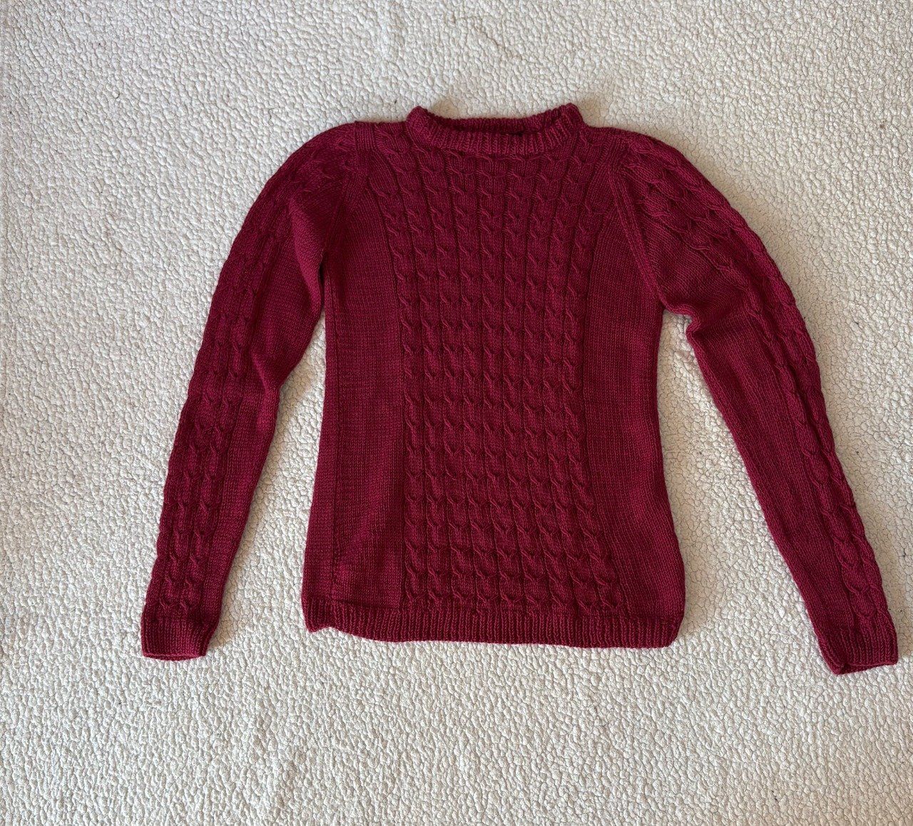 Pull femme rouge framboise fait main mérinos cachemire Inacio Creations M 38/40