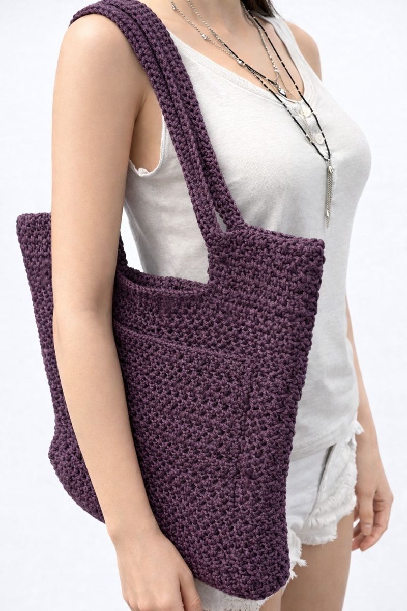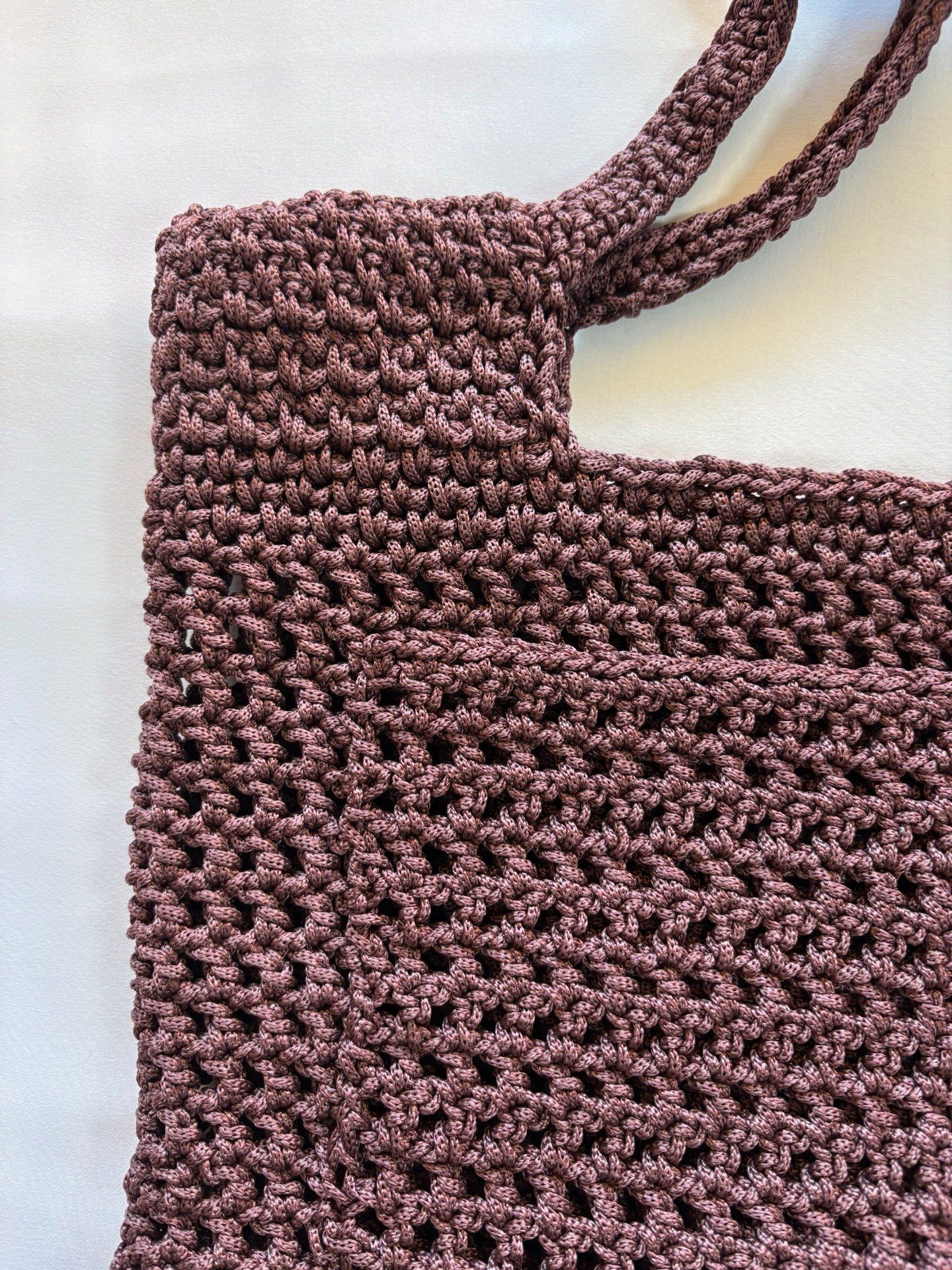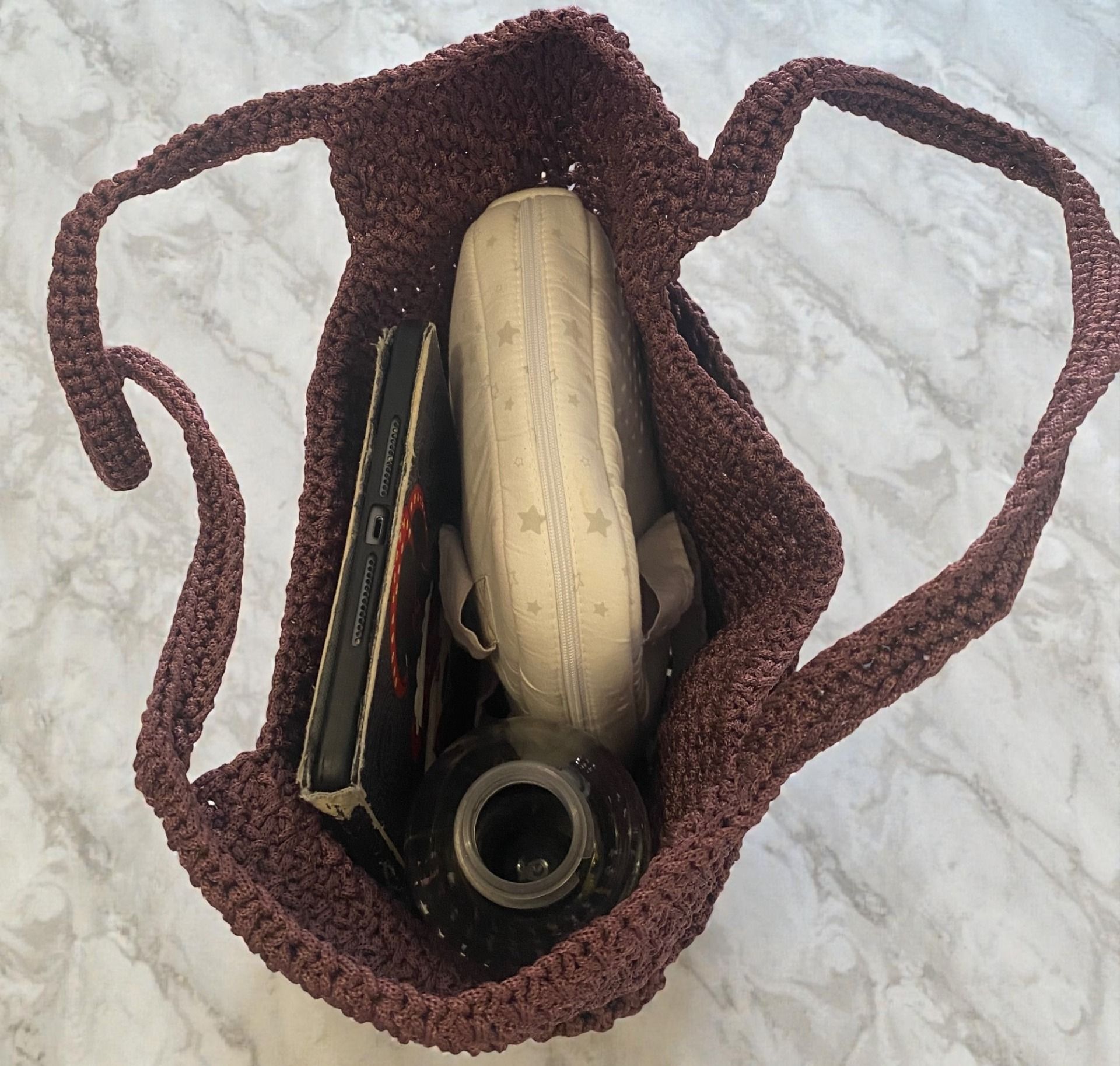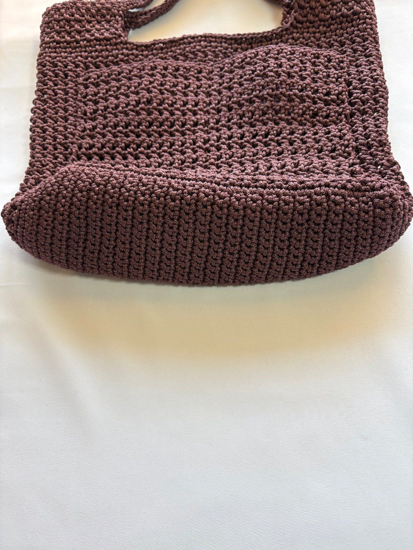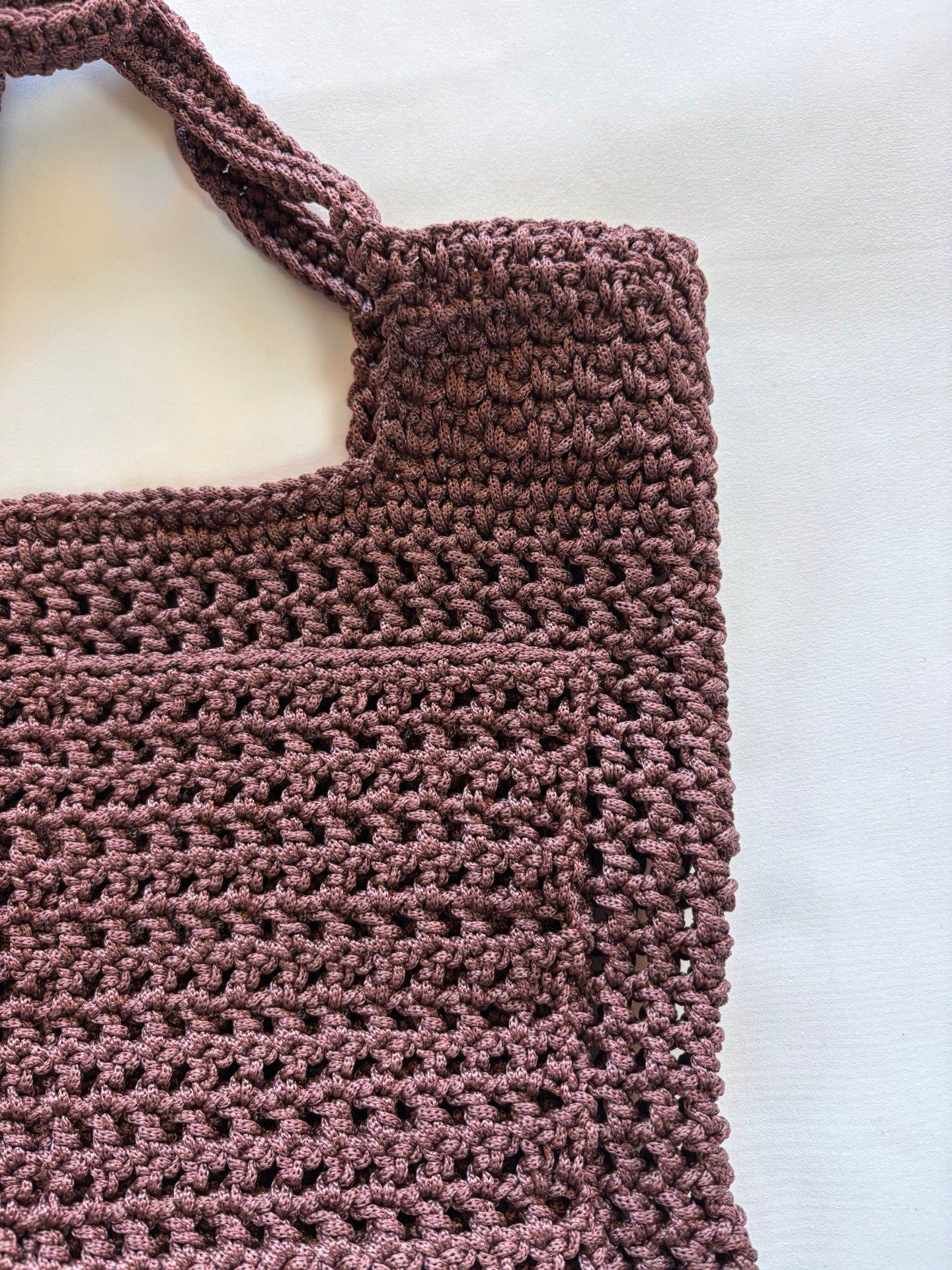 Sac cabas femme au crochet fait main, marron chocolat. Maille dense et forme généreuse pour vos essentiels, facile au quotidien. Taille unique.