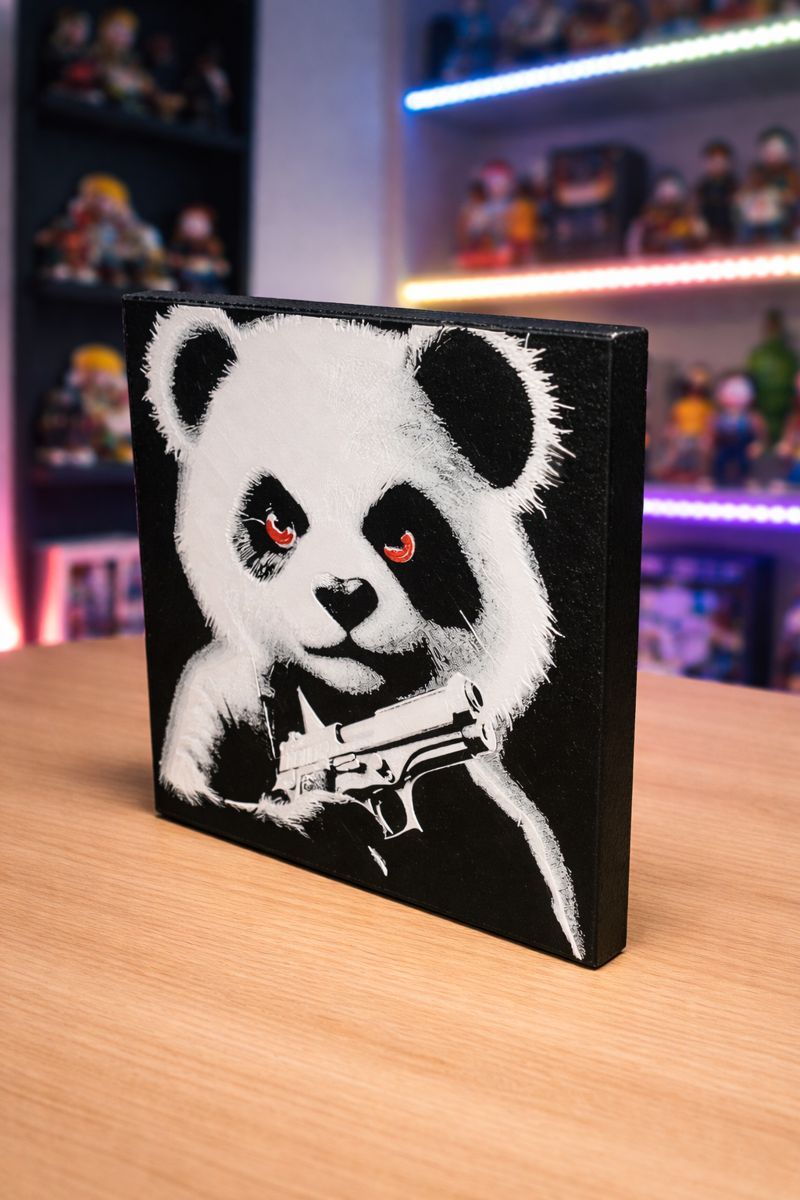 Réalisé grâce à la technologie HueForge, ce visuel prend vie par superposition de couches de PLA, offrant un rendu en relief unique,
