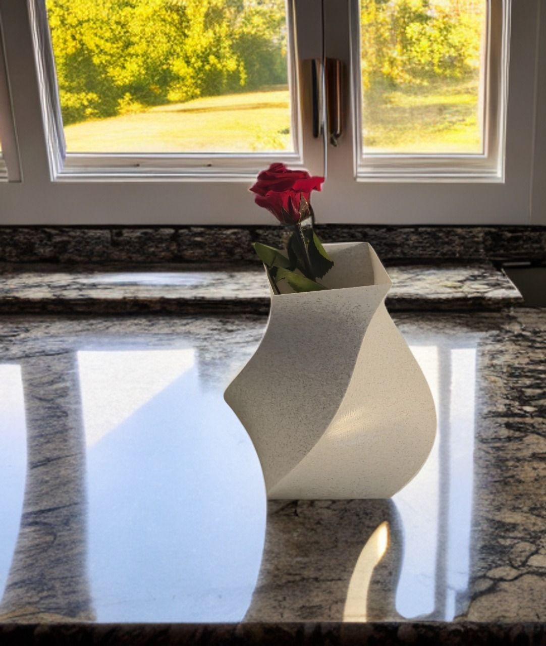 Apportez une touche élégante et contemporaine à votre intérieur avec ce vase décoratif imprimé en 3D, au design sculptural et fluide. Il est idéal pour accueillir fleurs séchées ou plantes artificielles, et sublimer une décoration de maison
