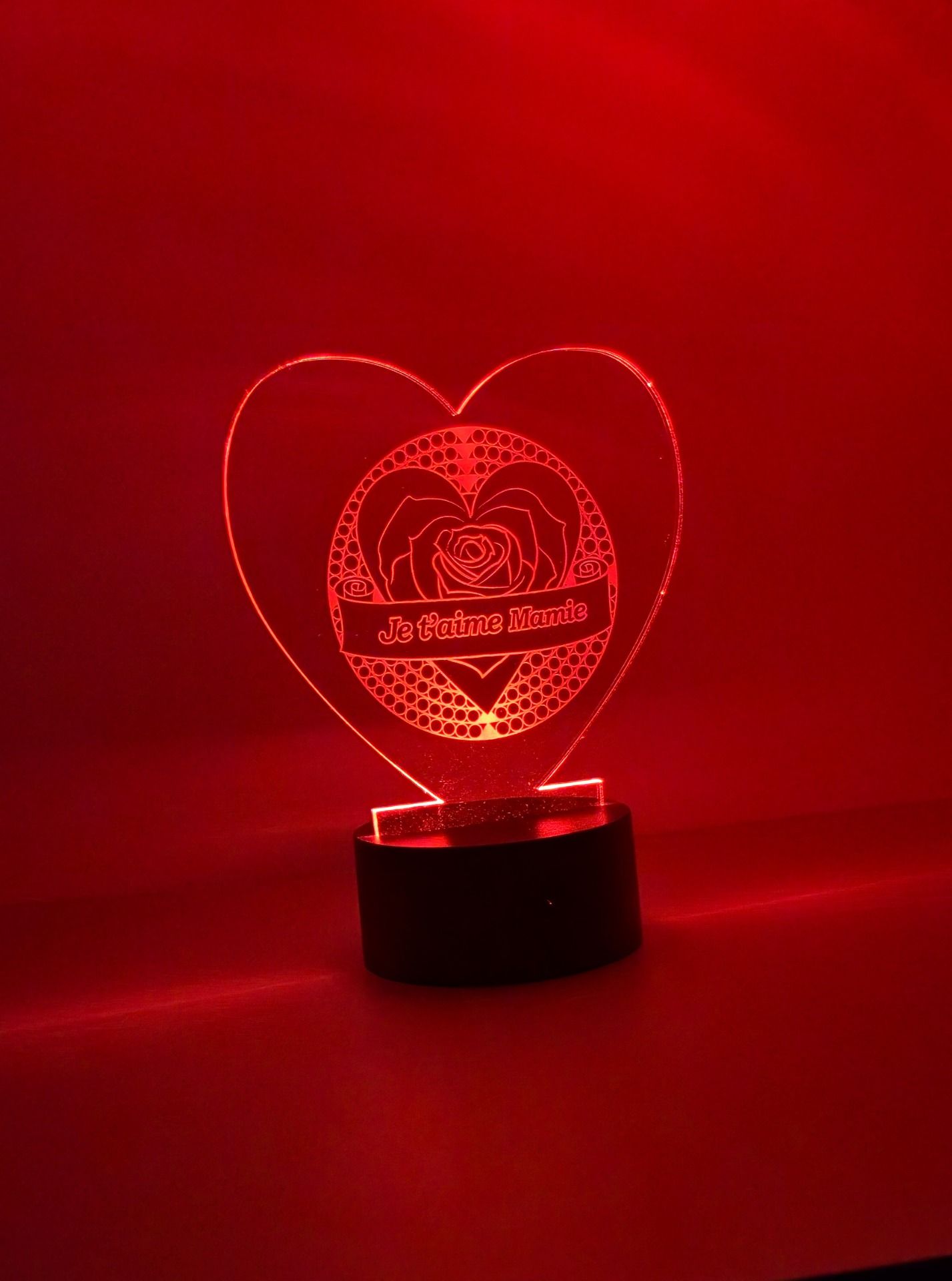 Veilleuse LED Cœur “Je t’aime Mamie” – Acrylique gravé au laser (USB)
